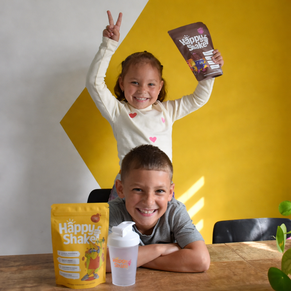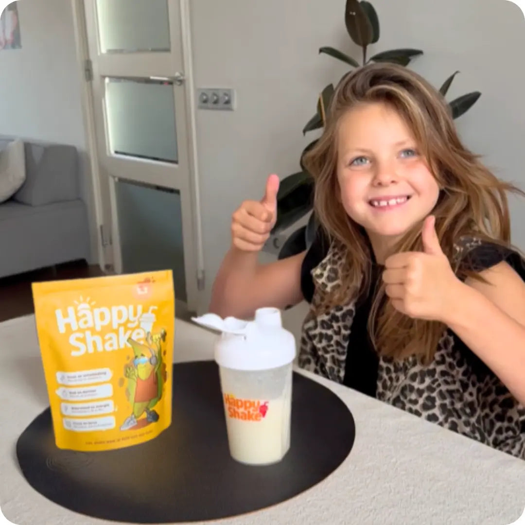 “Ochtenden waren hier altijd chaos. Sinds we HappyShake geven, drinken ze allebei iets voedzaams zó op zonder discussie. Wat een rust!”
